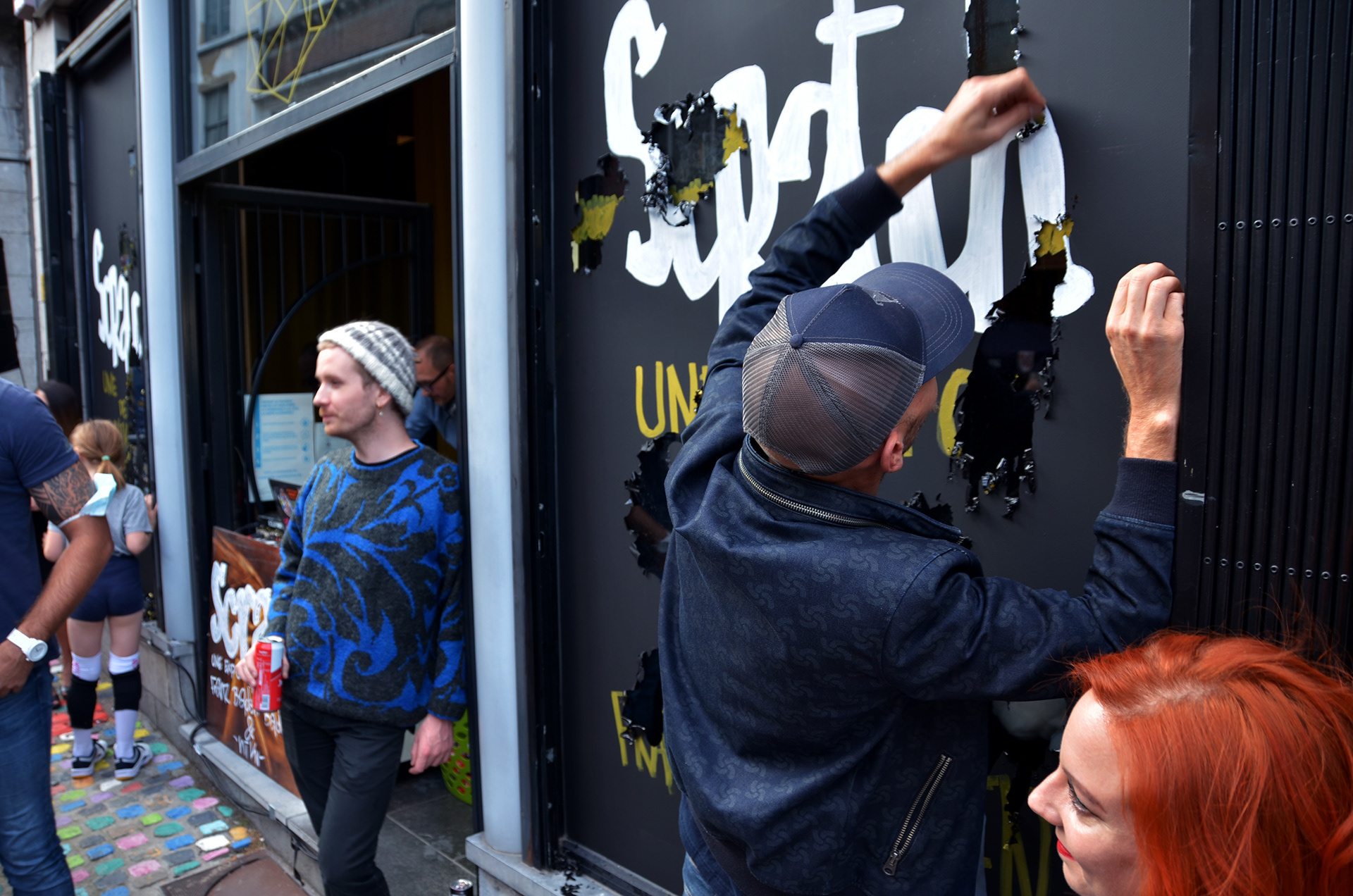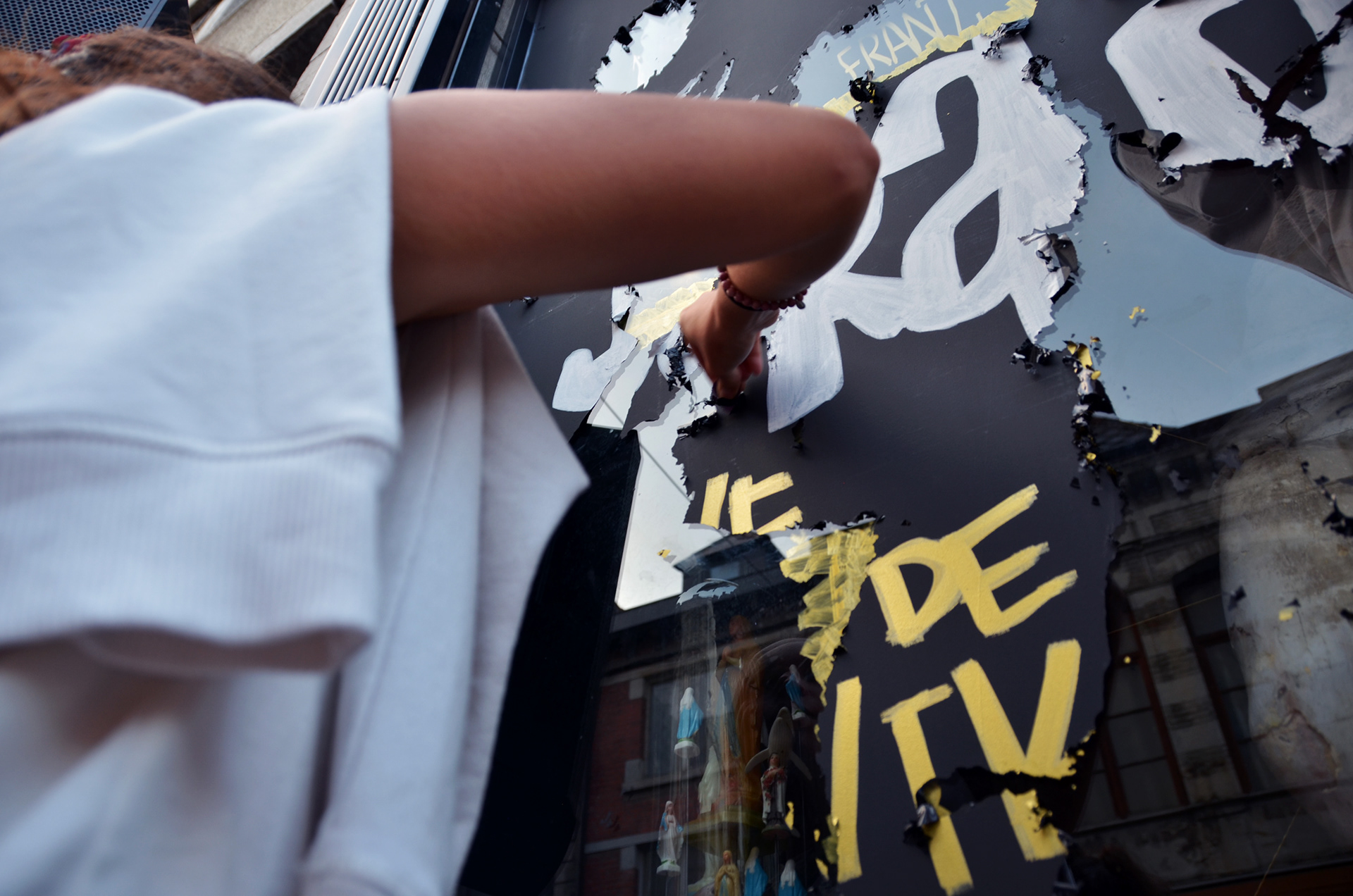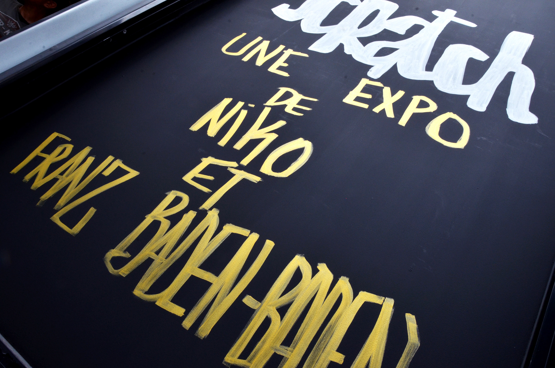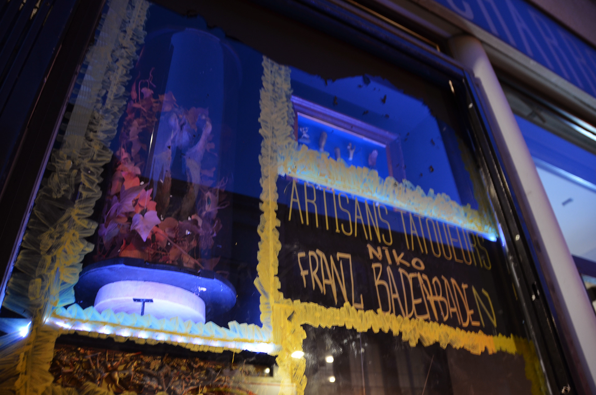 Avec mon amis Nicolas Fally, nous avons créé cette expo chez les copains de “Noir charbon”, un salon de tatouage. Lors du vernissage, le public a été amené à gratter la vitrine pour découvrir les œuvres.